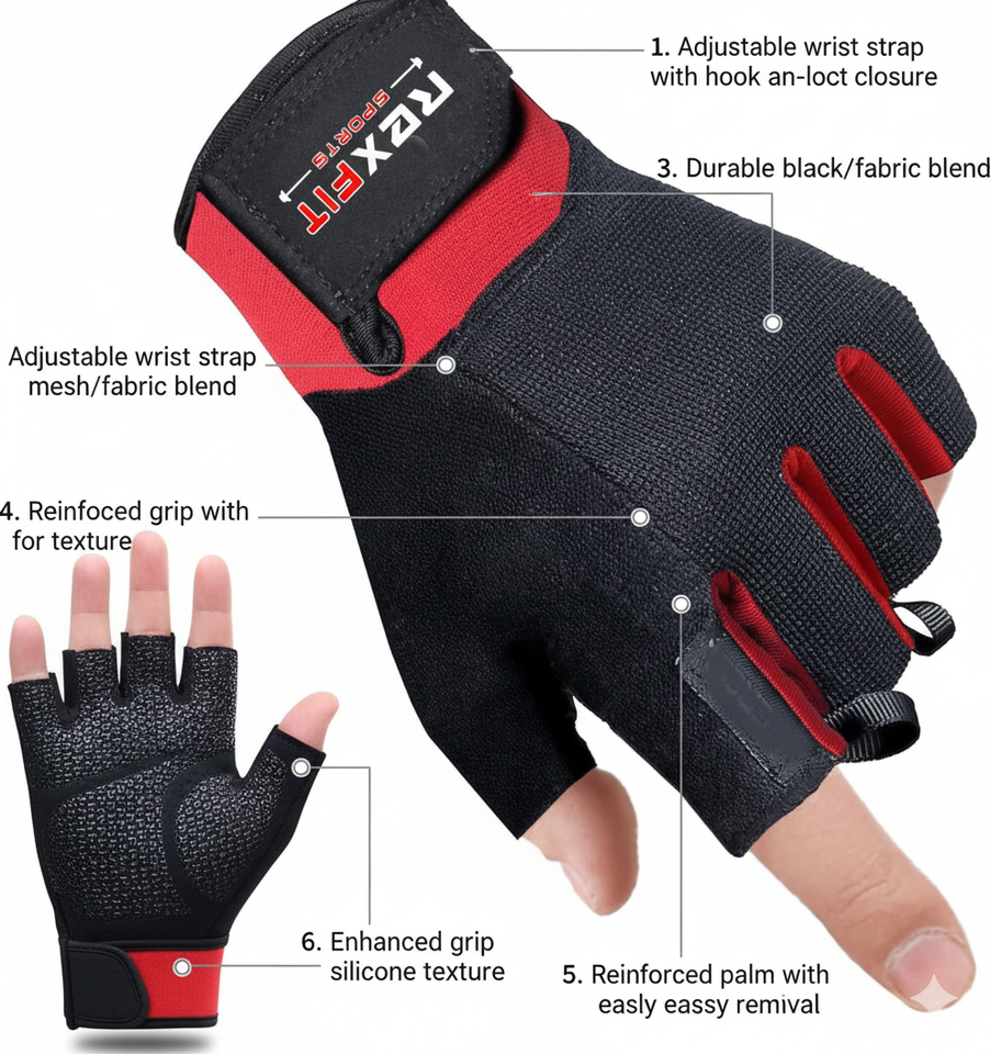 RexFit Sports Fitness Gloves for Men Women | Breathable Anti-Slip Gym Gloves for Weightlifting & Exercise