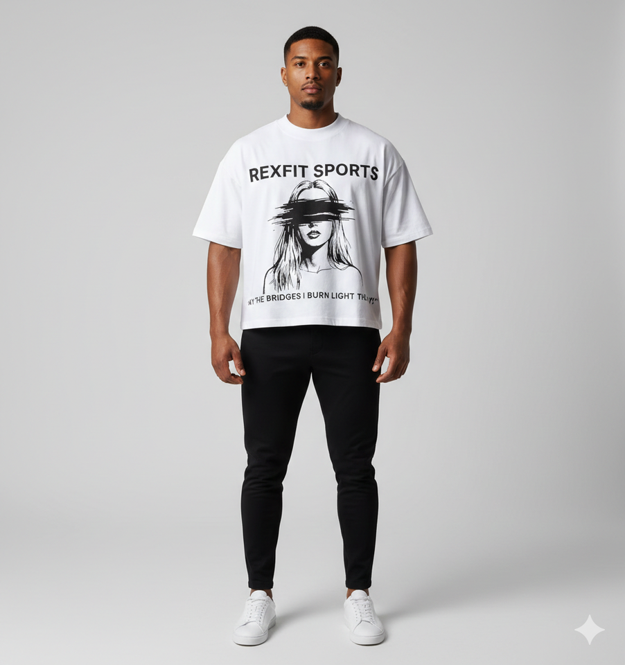 T-shirt court ample Rexfit, coupe oversize, impression DTG personnalisée, t-shirt graphique, coton lourd 100%, col rond, t-shirts pour hommes