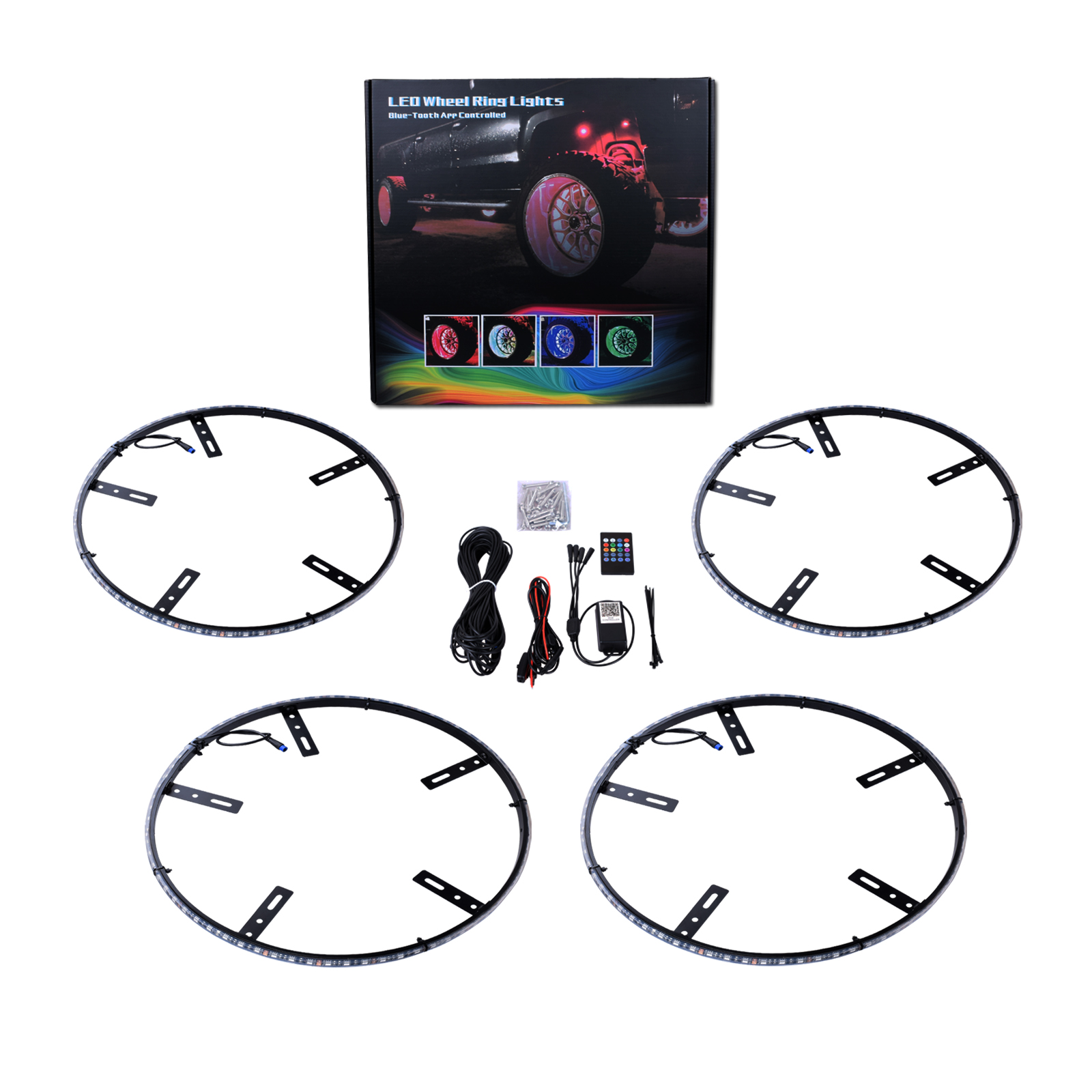 Lumière de moyeu de roue RVB multicolore Chasing 12V 14 "15" 17 "APP Bluetooh Music Control Led Wheel Lights pour voiture SUV Off-road Jeep