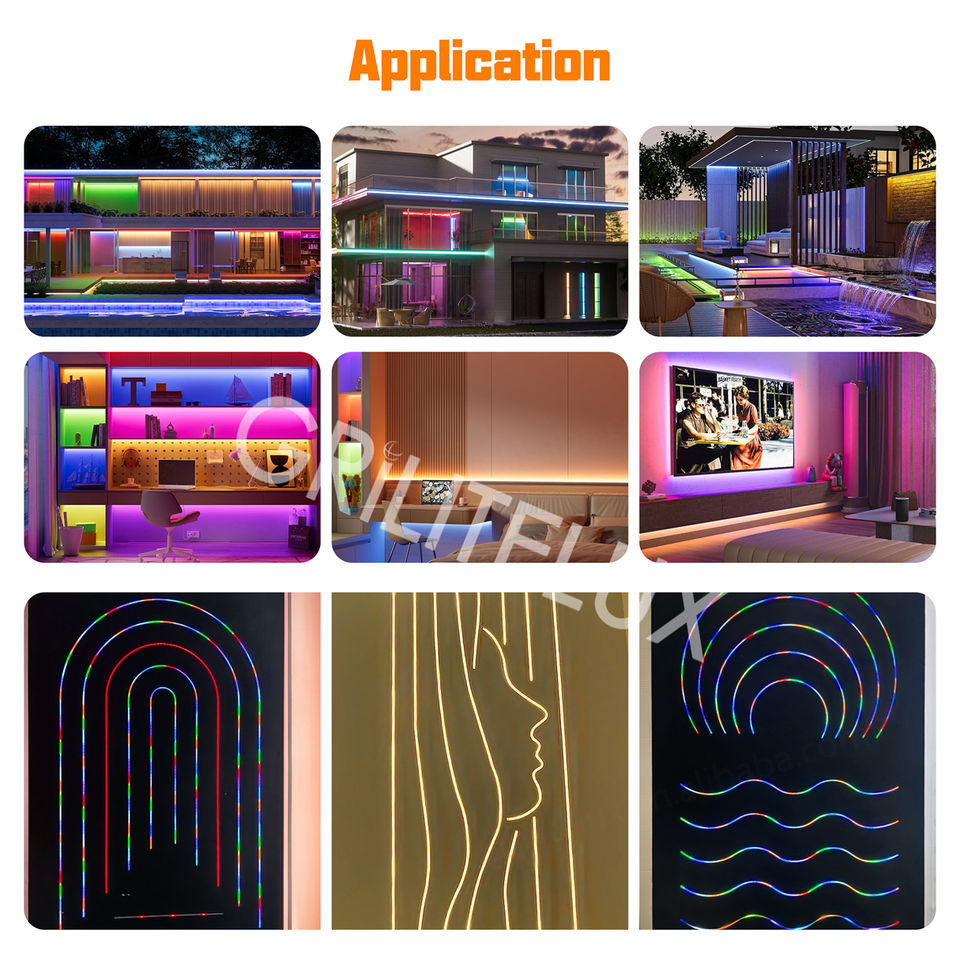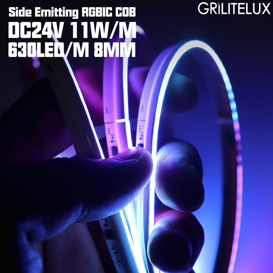Bande lumineuse LED RGBIC à pixels COB, WS2811 IC, 11W/m, découpable, 100mm, émission latérale, design COB, adressable