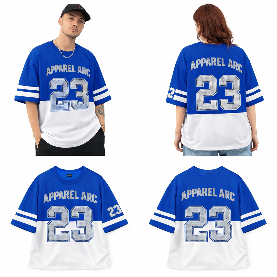 T-shirt surdimensionné en maille personnalisé avec strass pour vêtements de sport, vente en gros, fournisseur de vêtements de sport en vrac aux États-Unis