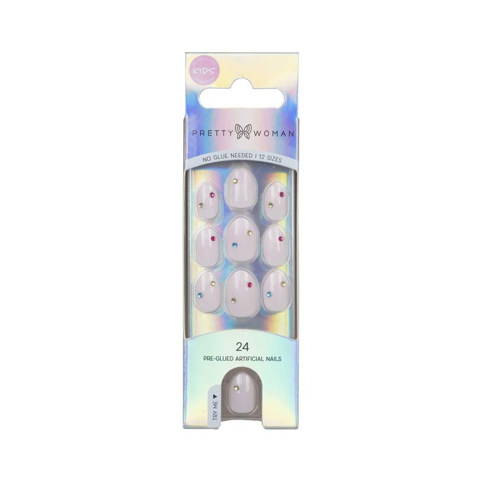 Faux ongles à strass, design élégant, application facile et sûre, fabrication OEM ODM, ongles à presser pour enfants, couleur nude pastel.