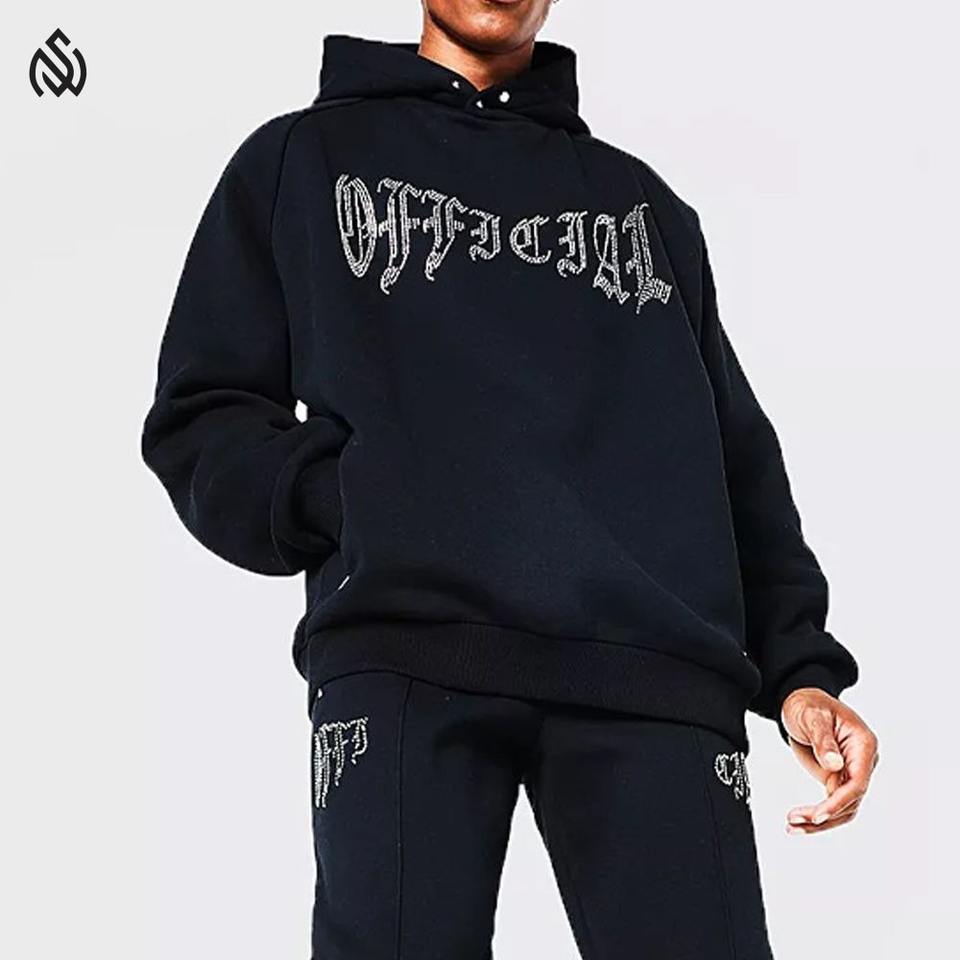 Strass luxe personnalisé Designer hommes à manches longues fermeture éclair complète deux pièces survêtement nouvelle mode Jogging pantalons de survêtement et ensemble à capuche