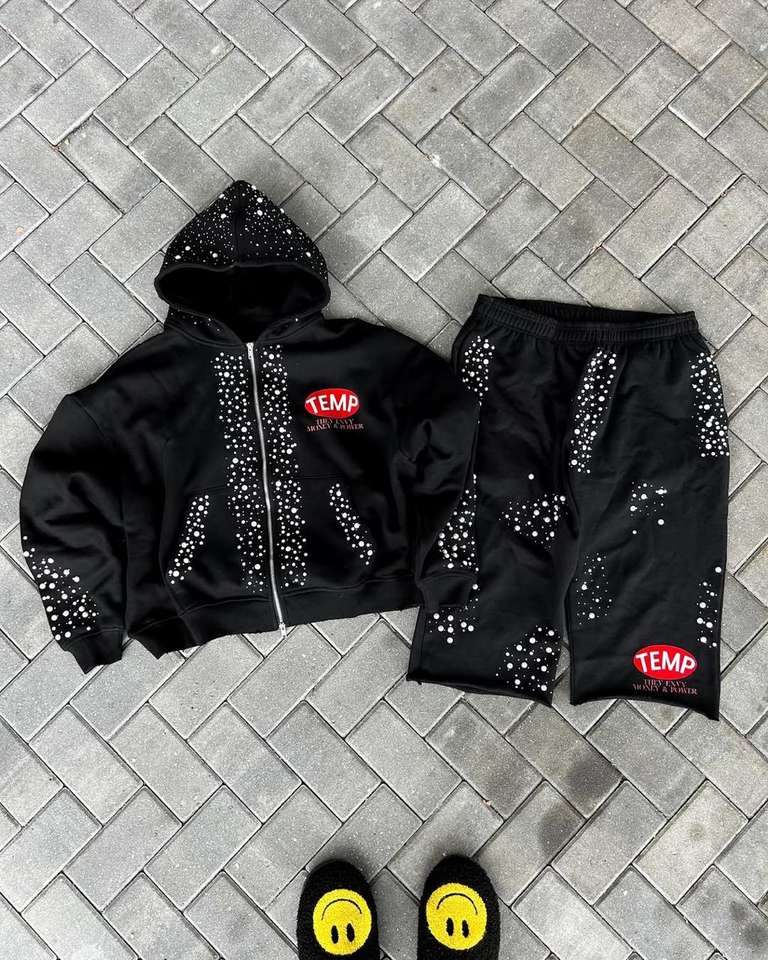 Strass luxe personnalisé Designer hommes à manches longues fermeture éclair complète deux pièces survêtement nouvelle mode Jogging pantalons de survêtement et ensemble à capuche