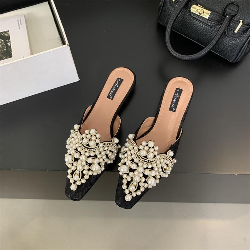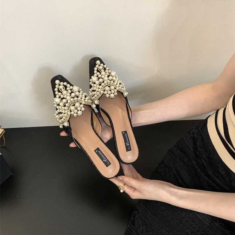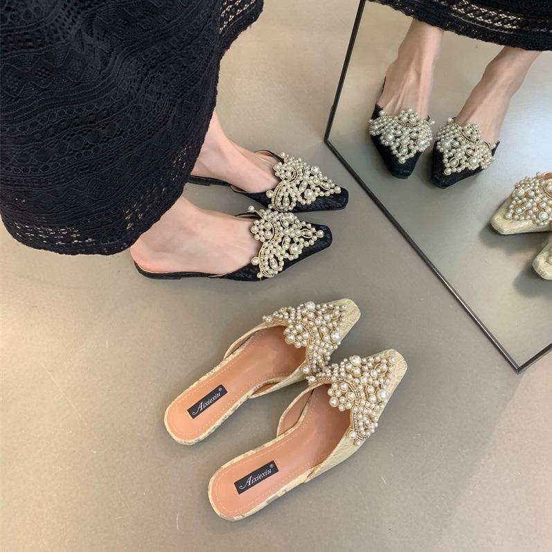 Sandales plates élégantes et décontractées pour femmes, avec strass, collection printemps 2024, chaussures de bureau pour femmes