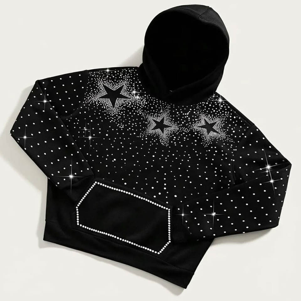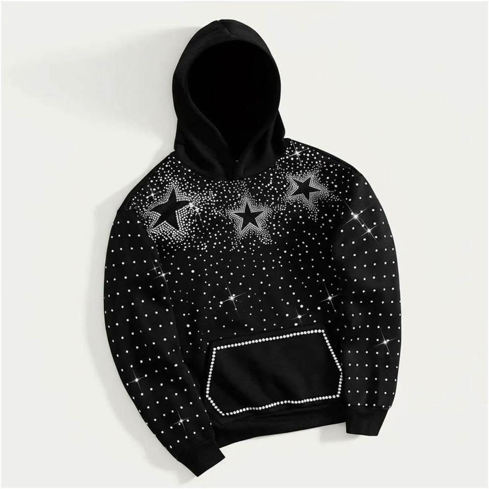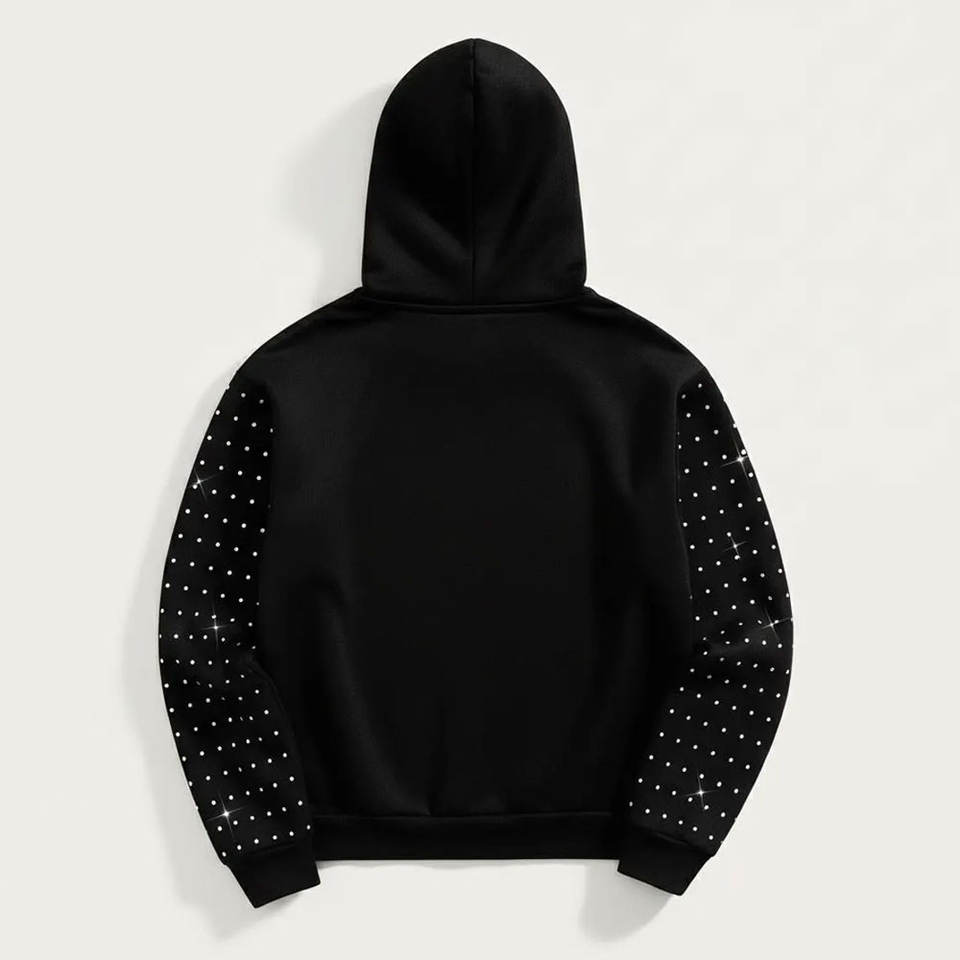 Ensemble de survêtement polaire oversize zippé pour homme avec strass, broderie effet vieilli, comprenant un sweat à capuche et un short de jogging