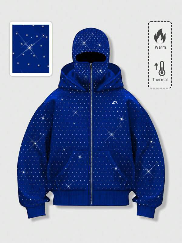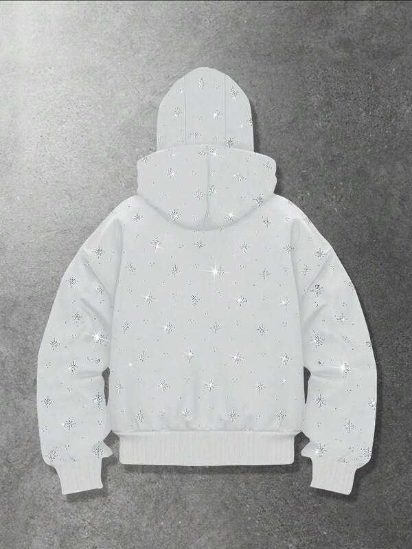 Sweat à capuche surdimensionné pour homme avec fermeture éclair ornée de strass, en polaire épaisse thermique, style streetwear hiver, avec cagoule, cordon de serrage et poche kangourou, personnalisable