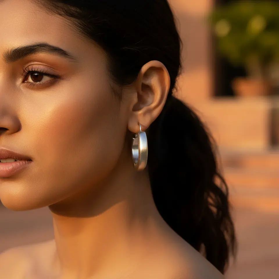 "Rhodium-Plated Silver Hoop Earrings for Women Trendy Religious Design 14k Gold Pearl Accent Rose Gold Tone"