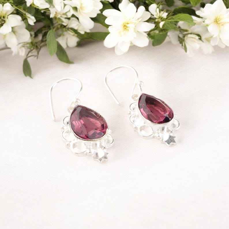 Keyword:Rhodolite 925 Made Sliver Earrings Rhodolite Stones