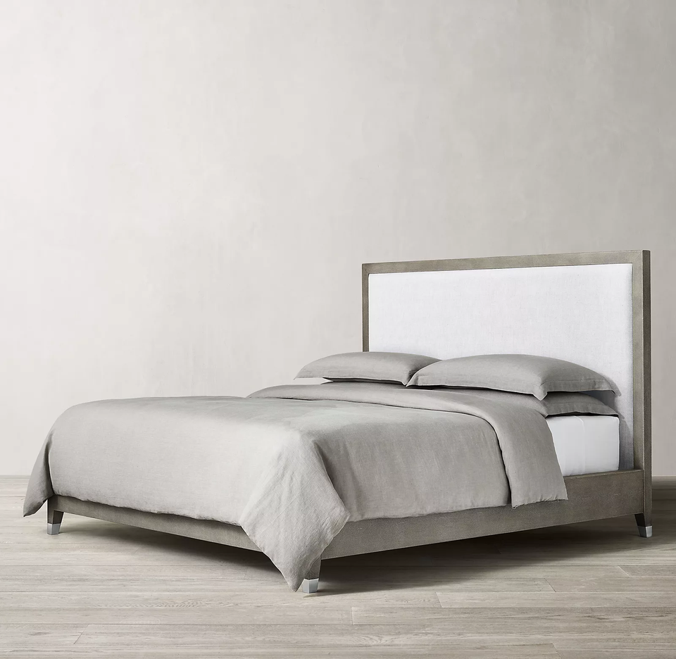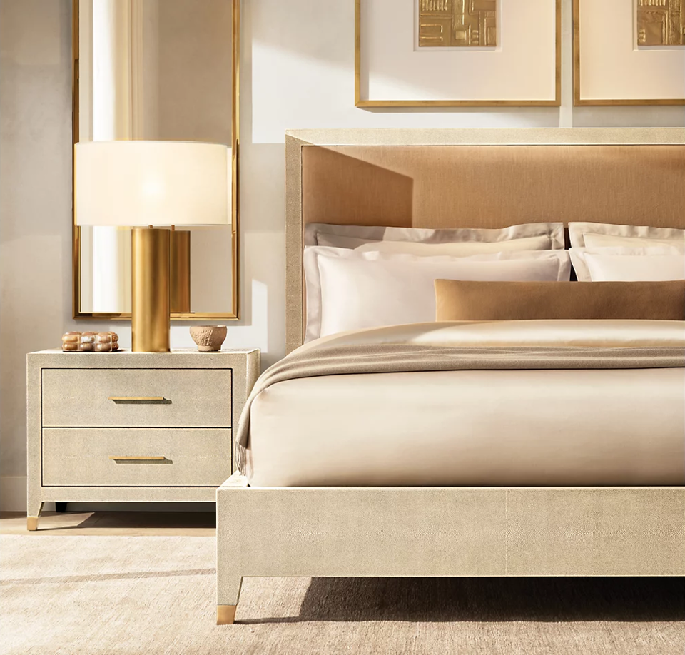 Lit en bois massif de style américain RH personnalisé Rhoohill, chambre à coucher moderne, cuir gaufré shagreen, lit queen-size en lin fait à la main pour hôtel