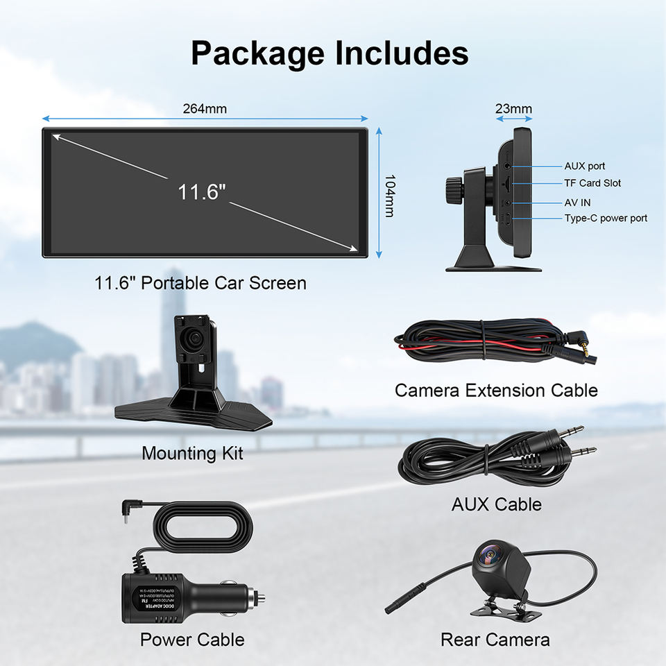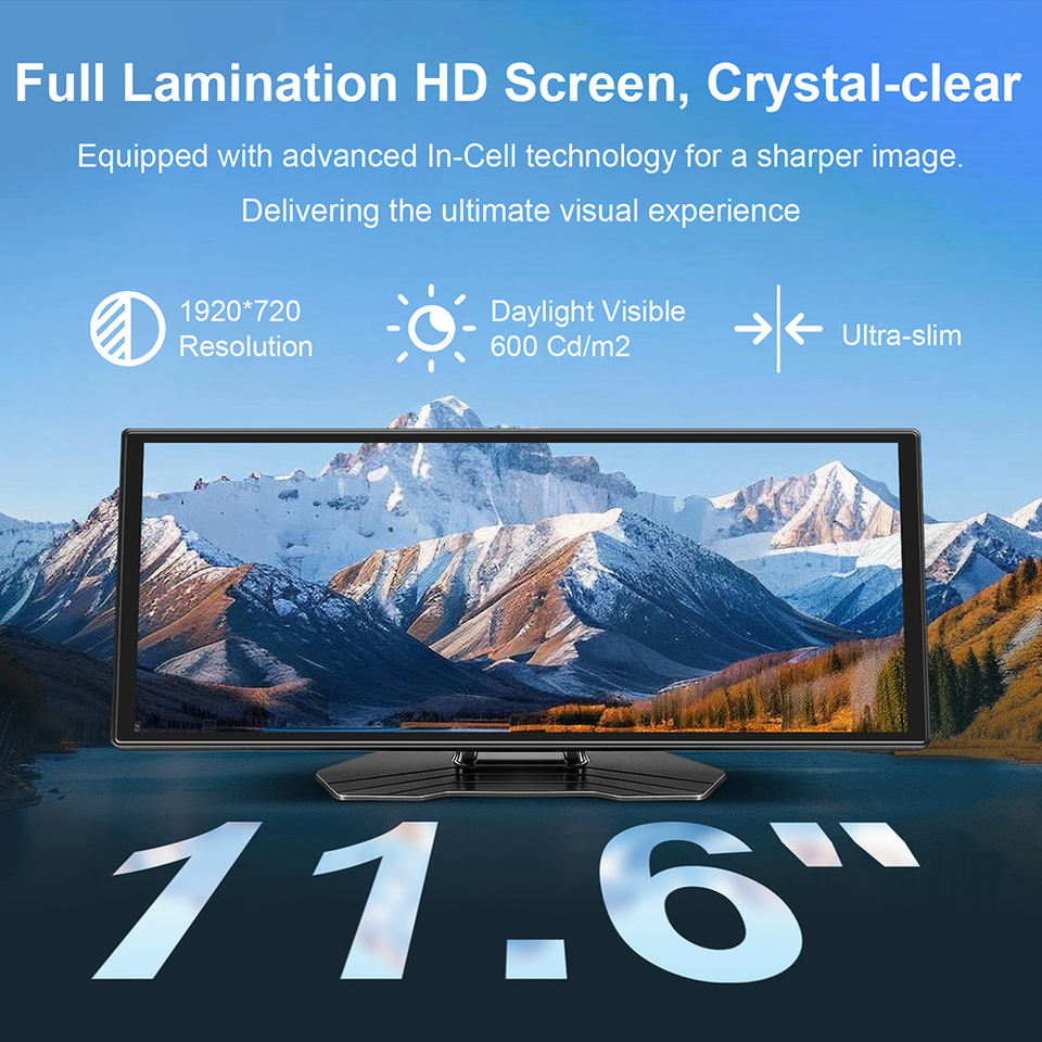 Écran portable Rhythm de 11,6 pouces avec CarPlay sans fil, Android Auto, écran partagé, navigation GPS, Netflix, YouTube