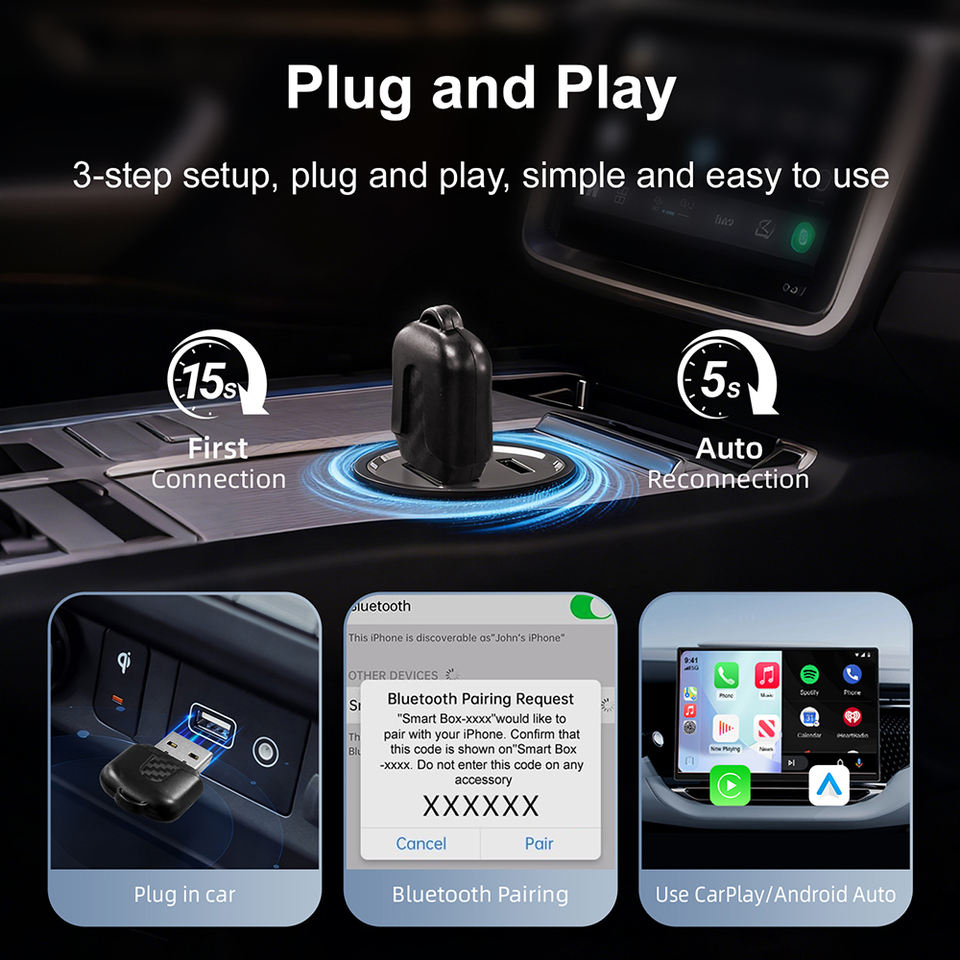 Adaptateur sans fil 2-en-1 Rhythm CarPlay Android Auto, connexion automatique, WiFi 5.8G, BT 5.2, mise à niveau en ligne