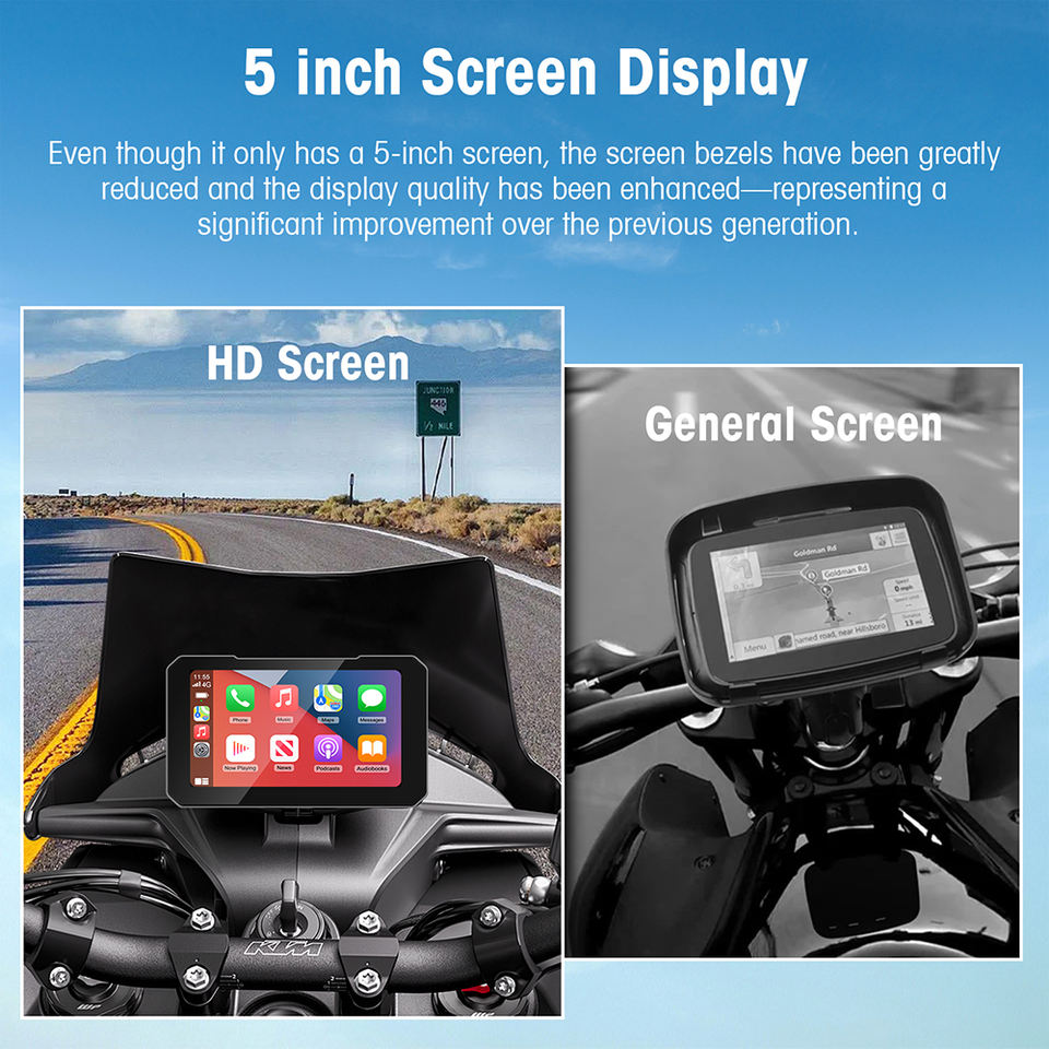 Écran de moto sans fil Full HD de 5 pouces avec CarPlay, Android Auto, étanche IP67, TPMS en option