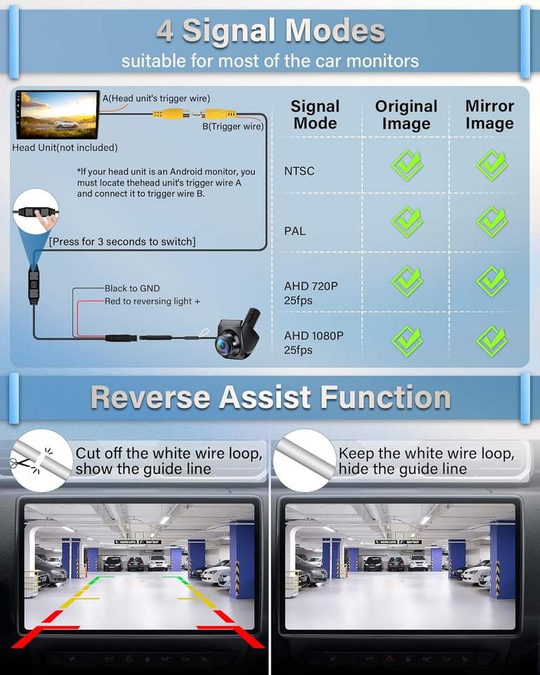 Caméra de reverse, Sonde de stationnement, Moniteur, Caméra de reculType