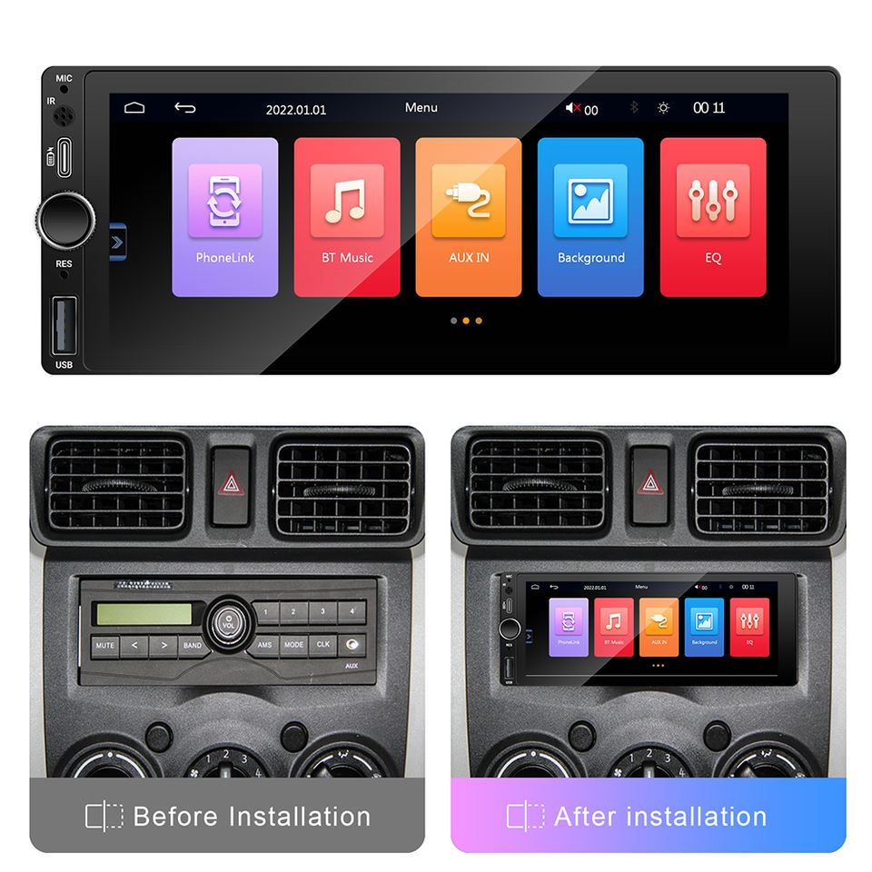 Rhythm Portable 1 Din Lecteur multimédia de voiture Écran 6.86 pouces Lecteur MP5 CarPlay Android Auto GPS Fonctions DSP Garantie 1 an