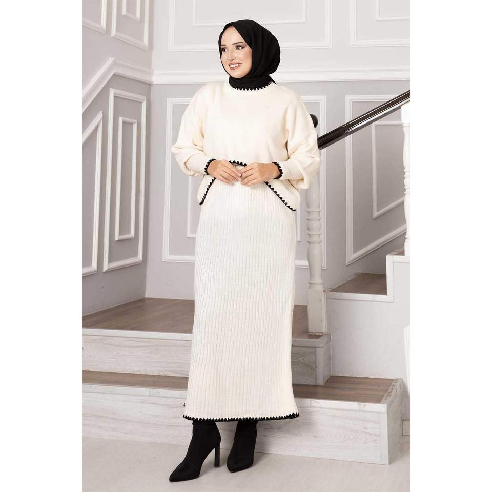 Ensemble 2 pièces manches courtes côtelées écru