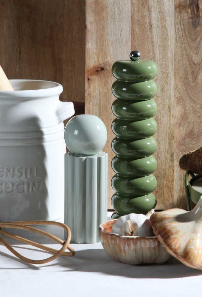 Moulin à sel et à poivre en laque côtelée, design vertical sculptural, parfait pour la décoration de la table à manger