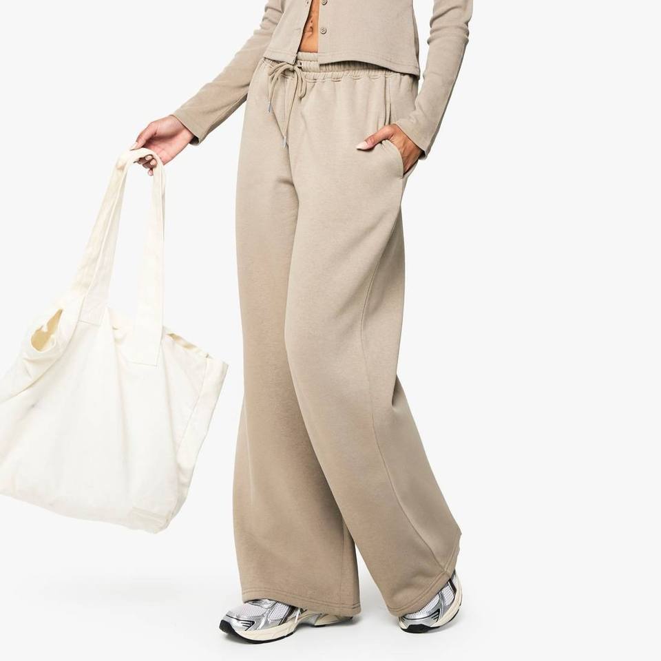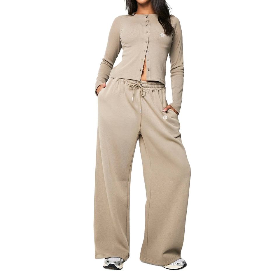 Ensemble deux pièces pour femmes en coton côtelé, haut à manches longues à boutons, pantalon à jambes larges avec cordon de serrage, fabrication OEM
