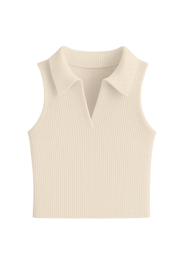 Numéro de Type:RIBBED KNIT CROP POLO TANK