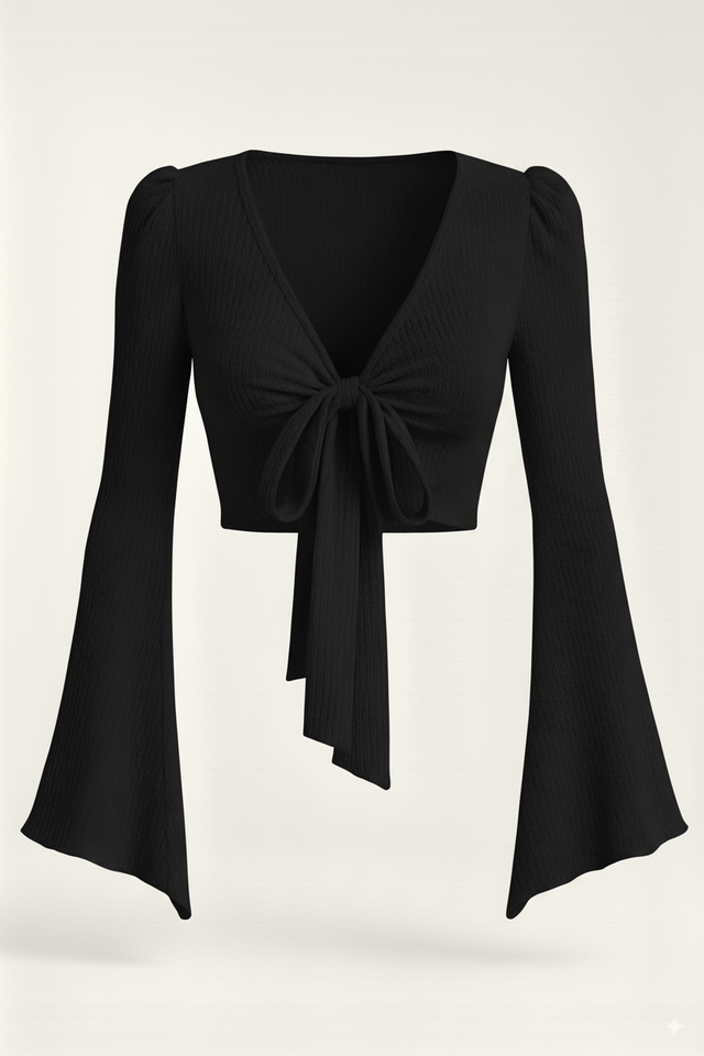 Numéro de Type:RIBBED TIE FRONT CROP TOP