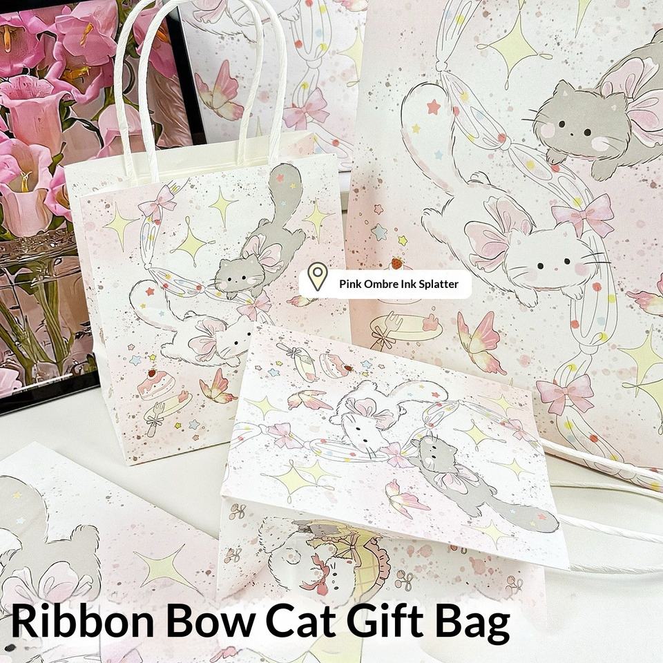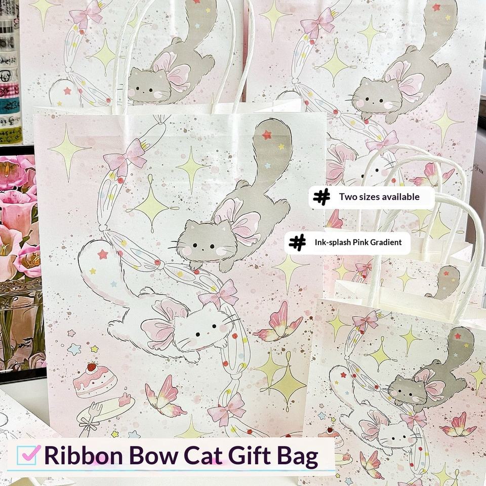 Ribbon bow cat gift bag large-kraft paper