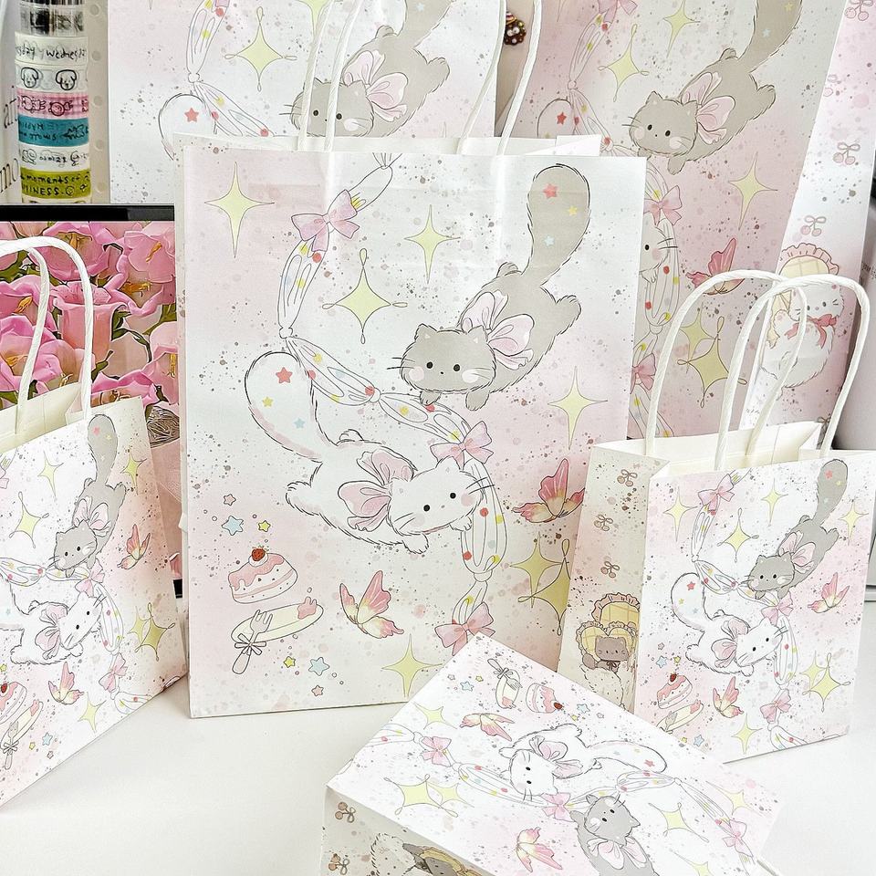 Ribbon bow cat gift bag trumpet-kraft paper