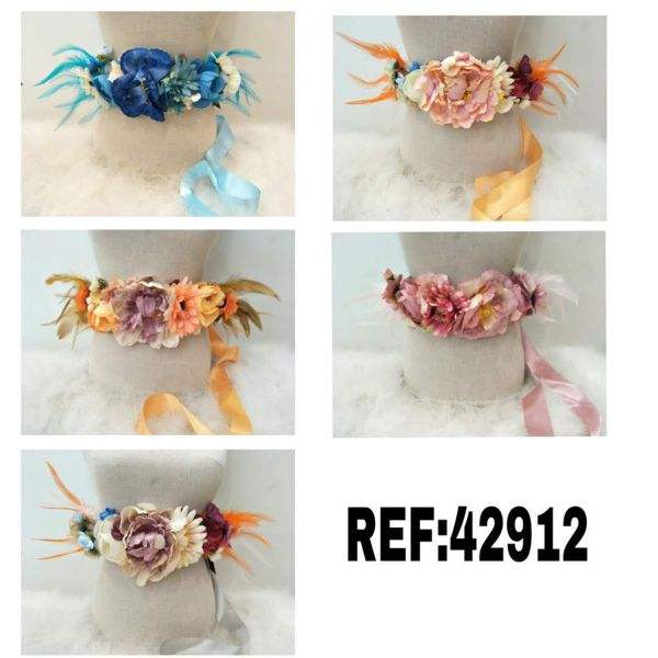 Ceinture à fleurs en ruban avec plumes des deux côtés 4 cm Ceintures de mariage
