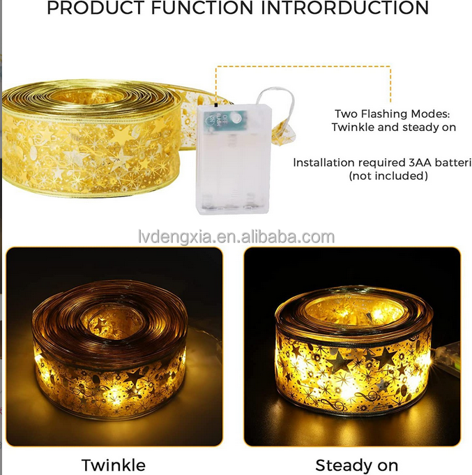 Ruban lumineux pour arbre de Noël, alimenté par piles, nœuds de ruban lumineux pour Noël, décoration de Noël DIY, multicolore changeant