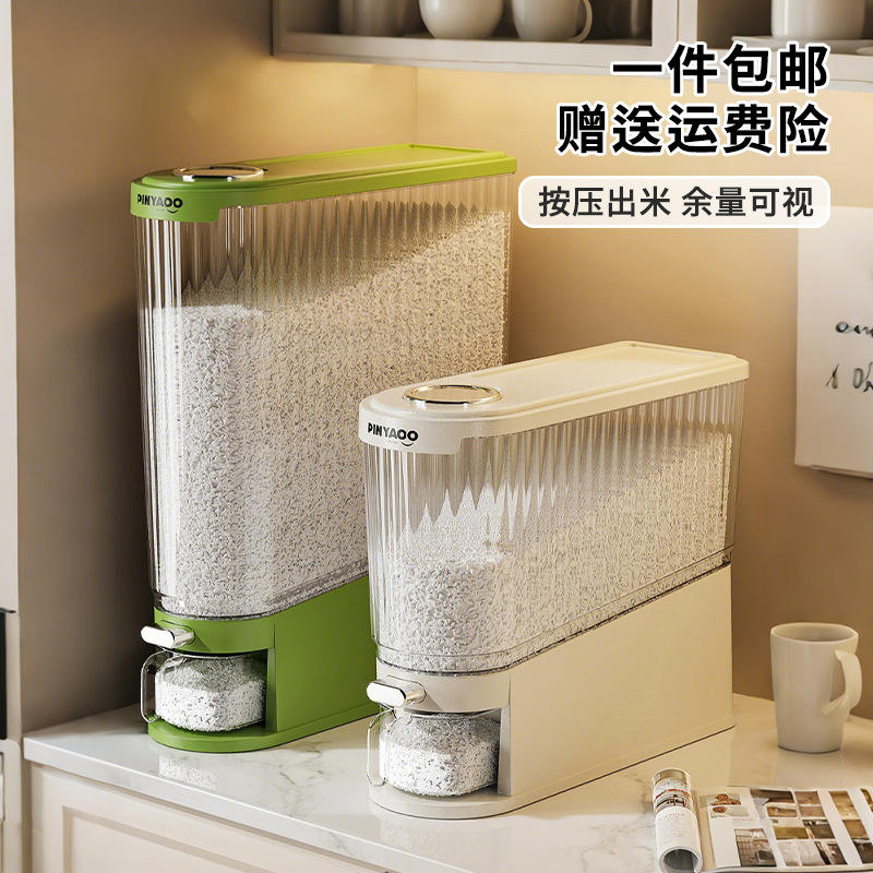 Conteneur à riz 20 kg, hermétique, anti-insectes, anti-humidité, design rectangulaire avec couvercle à bascule, système de distribution par pression