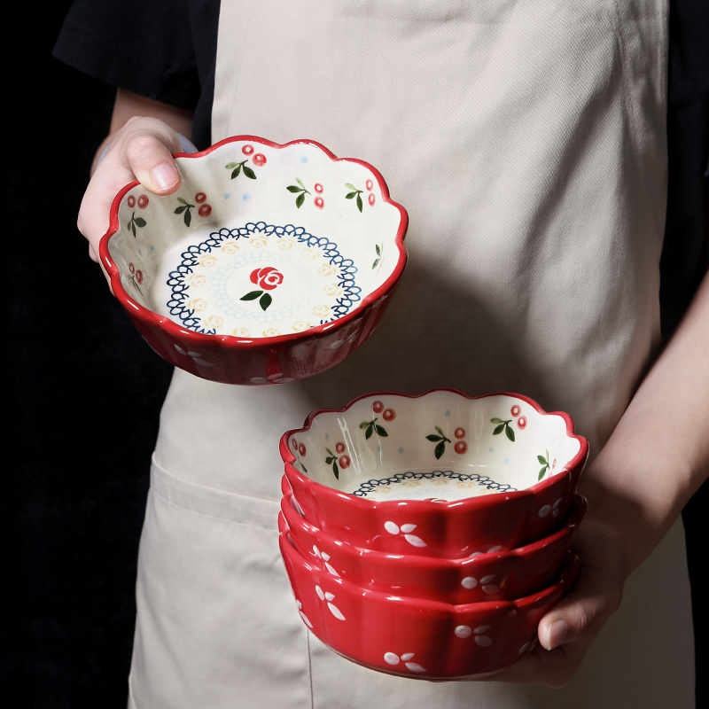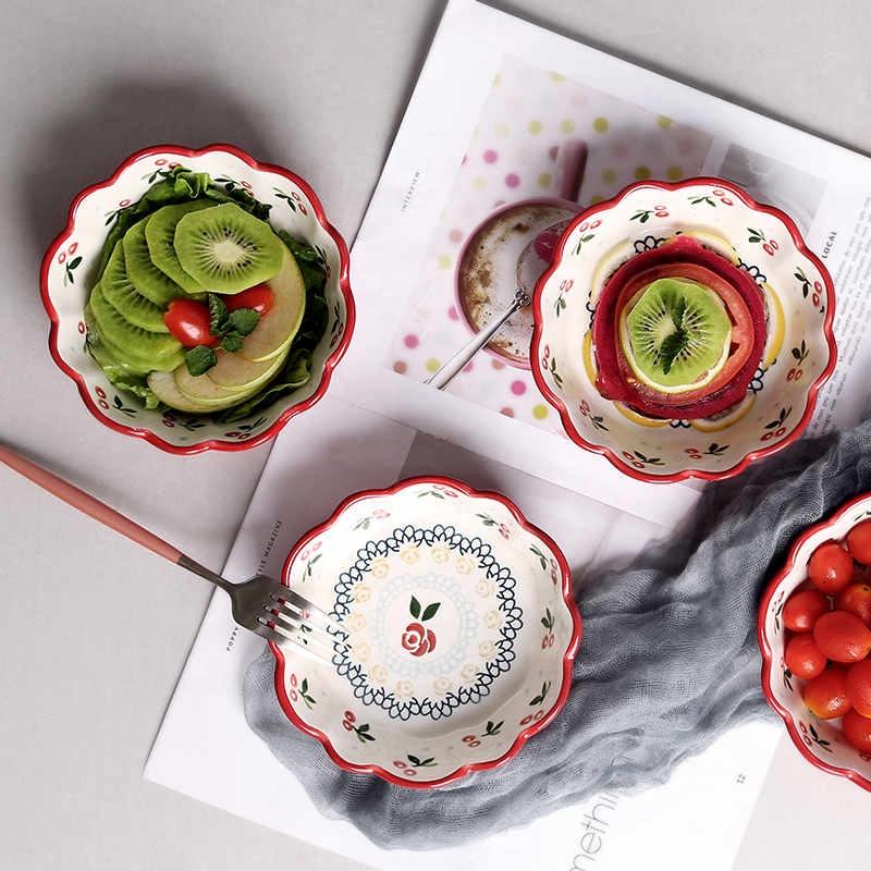 Bol en céramique de style japonais pour salade, fruits, desserts et collations, vaisselle en céramique de style fleur, ustensiles de cuisine, pots, bol en céramique de style cerise, vaisselle en porcelaine