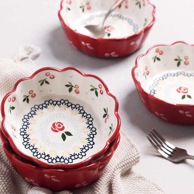 Bol à dessert de salade mignon créatif:Bol de cuisson en céramique domestique
