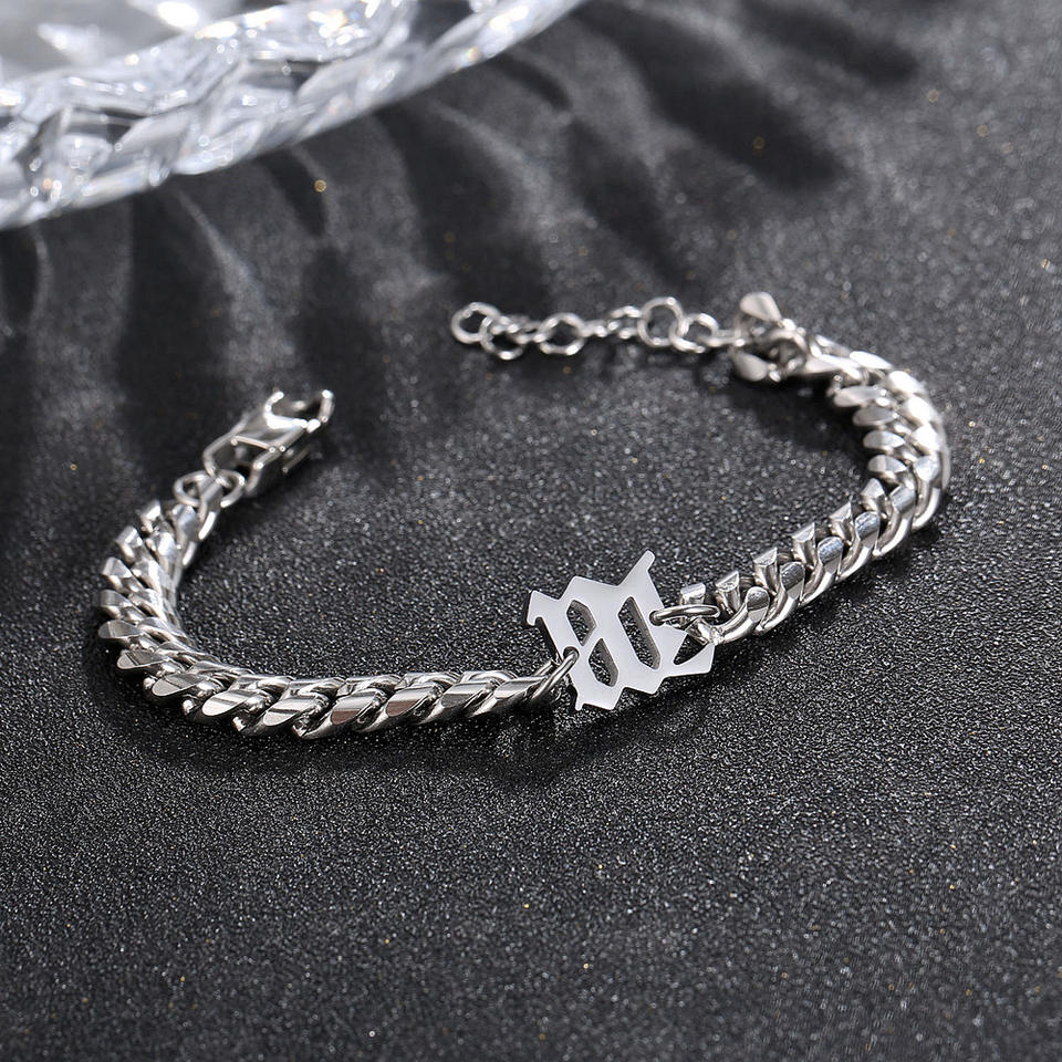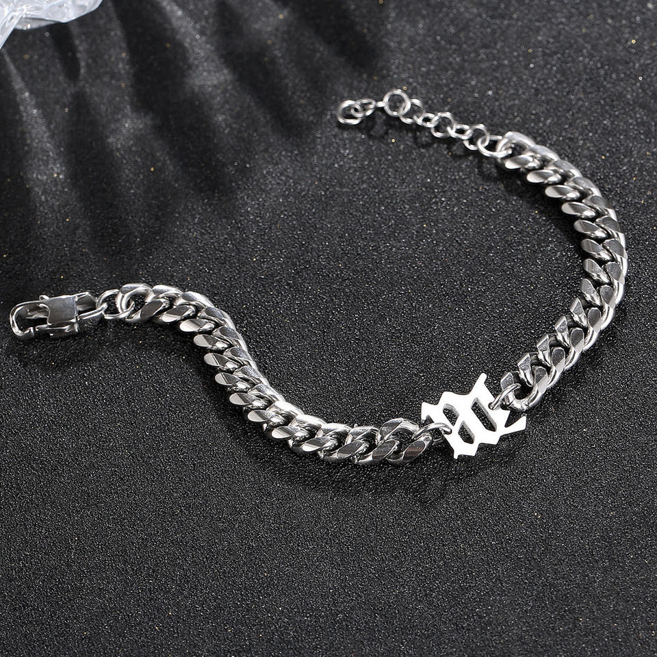 Bracelet Hip-Hop Cubain Rich Brian Seven Brother Tendance Unisexe en Acier Titane avec Lettre Personnalisée Chaîne Épaisse Anniversaire
