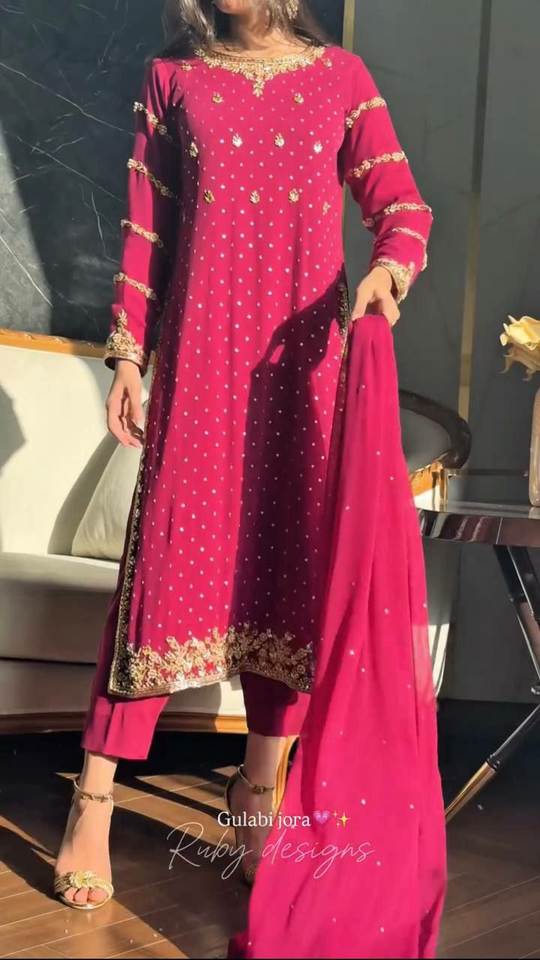 Fête de couleur riche/occasion porter Moti travail lourd Faux Georgette tissu coupe droite bordure Anarkali Salwar Kameez en gros