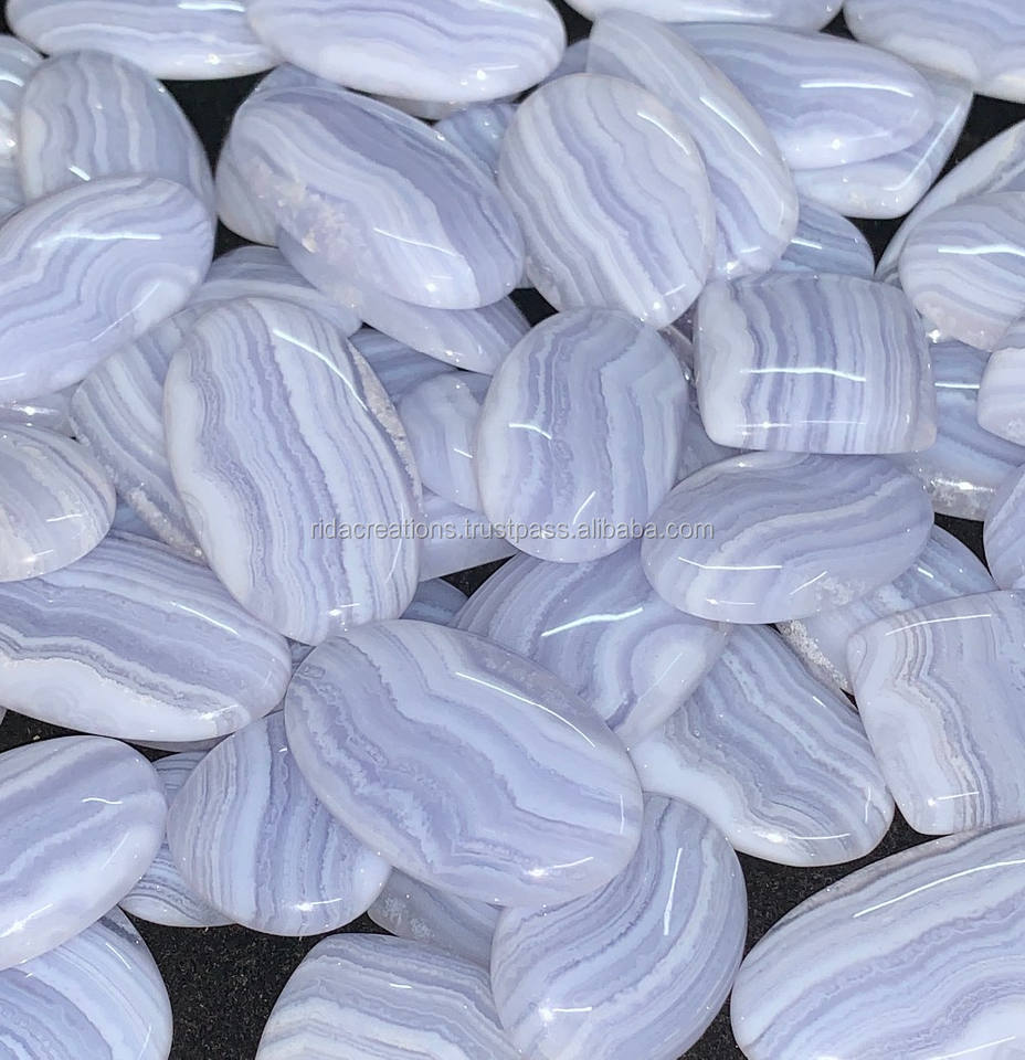 Rida Creations Agate Naturelle Bleue et Blanche en Forme d'Ovale - Certifiée par un tiers du Rajasthan - Prix de Gros - Taille Personnalisable