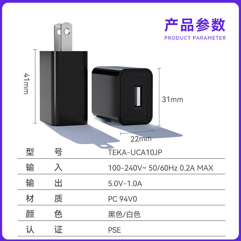 Chargeur USB Riddle 5V1A pour téléphone portable, prise de charge noire et blanche, certifié PSE japonais, pour utilisation transfrontalière