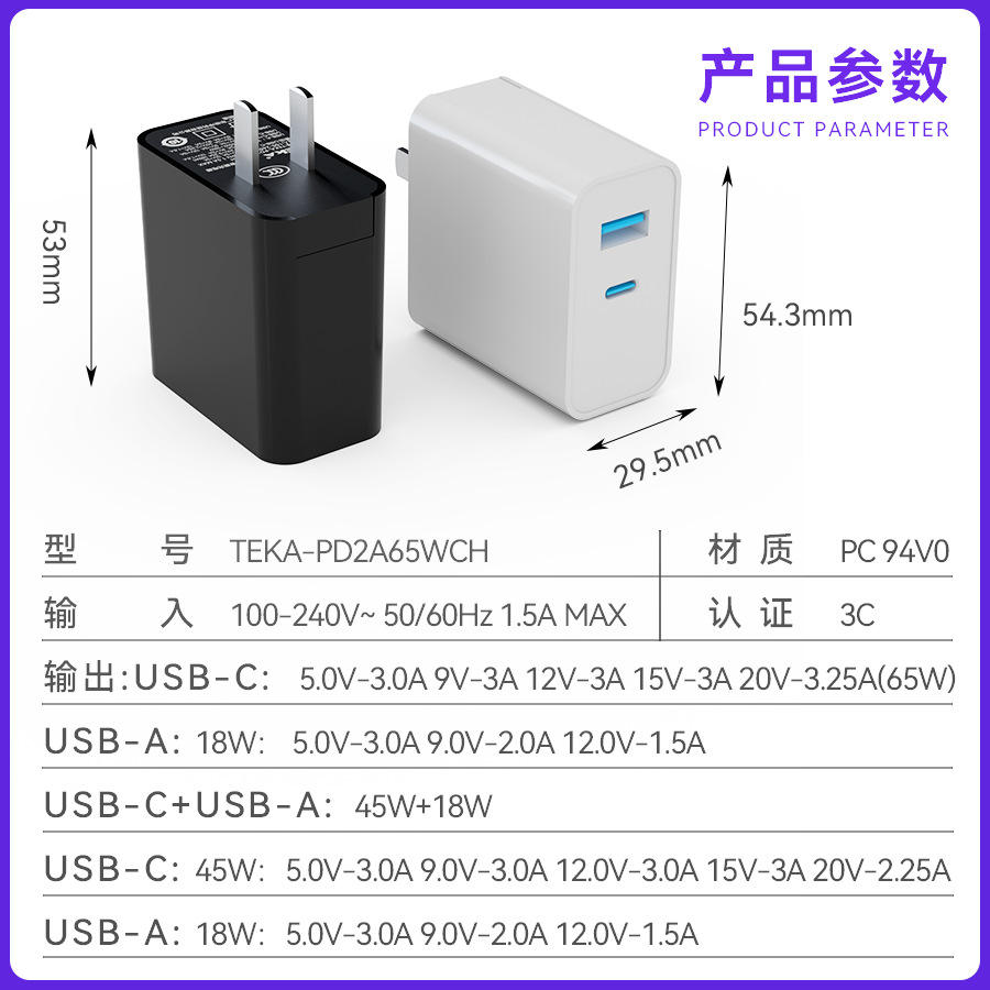 Norme chinoise PD65W, norme américaine PD65W, norme européenne 65W PD
