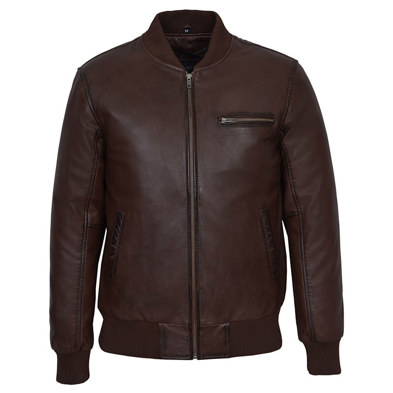 Veste de motard en cuir noir de haute qualité pour homme, style vintage, avec col montant et logo sur le devant - Veste de moto tendance