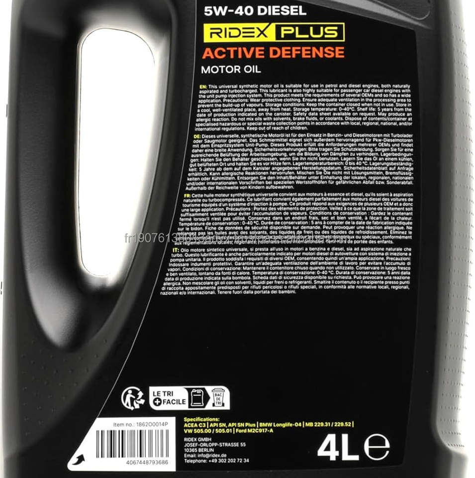 Huile moteur entièrement synthétique Ridex Plus 5W30 API SD Modèle 345678 Fournisseur en gros