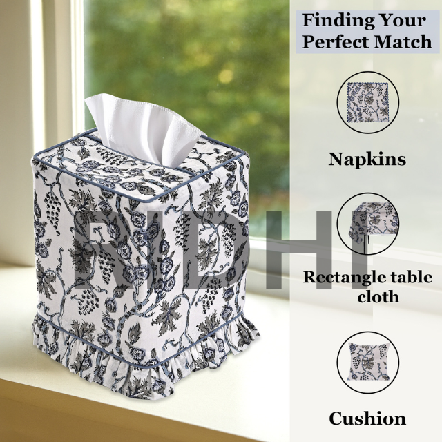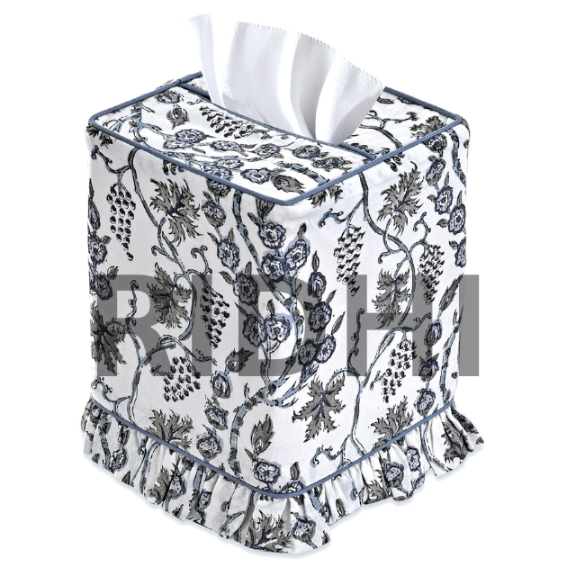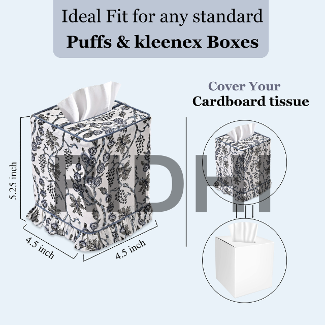 Boîte à mouchoirs en tissu de coton fait main avec imprimé à volants bleu ciel Ridhi, classique, écologique, durable, porte-serviettes carré