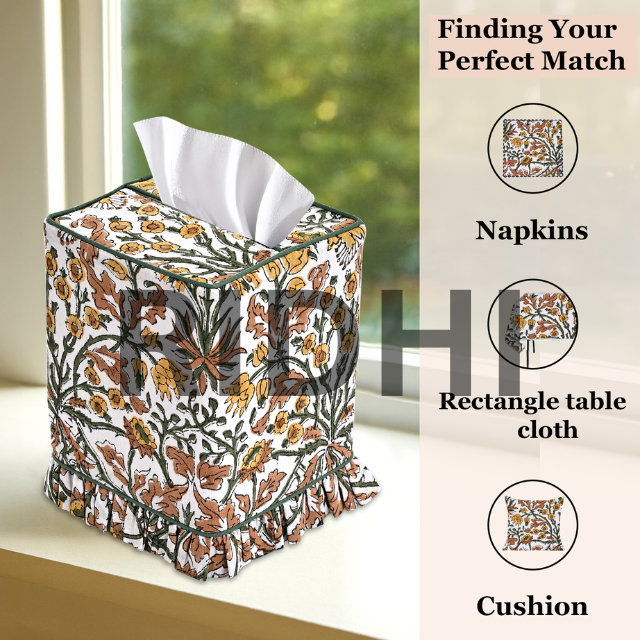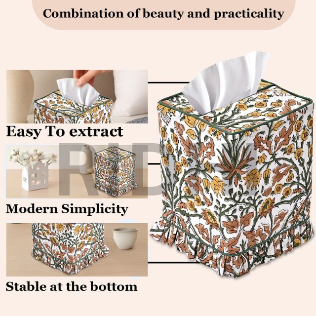 Boîte à mouchoirs en tissu imprimé à volants jaune Goldenrod Ridhi, fabrication artisanale, classique, durable, écologique, porte-serviettes carré, maison, hôtel