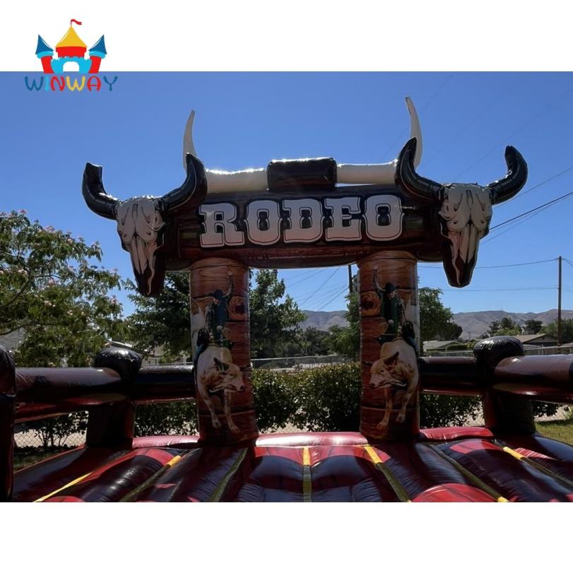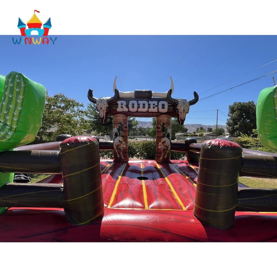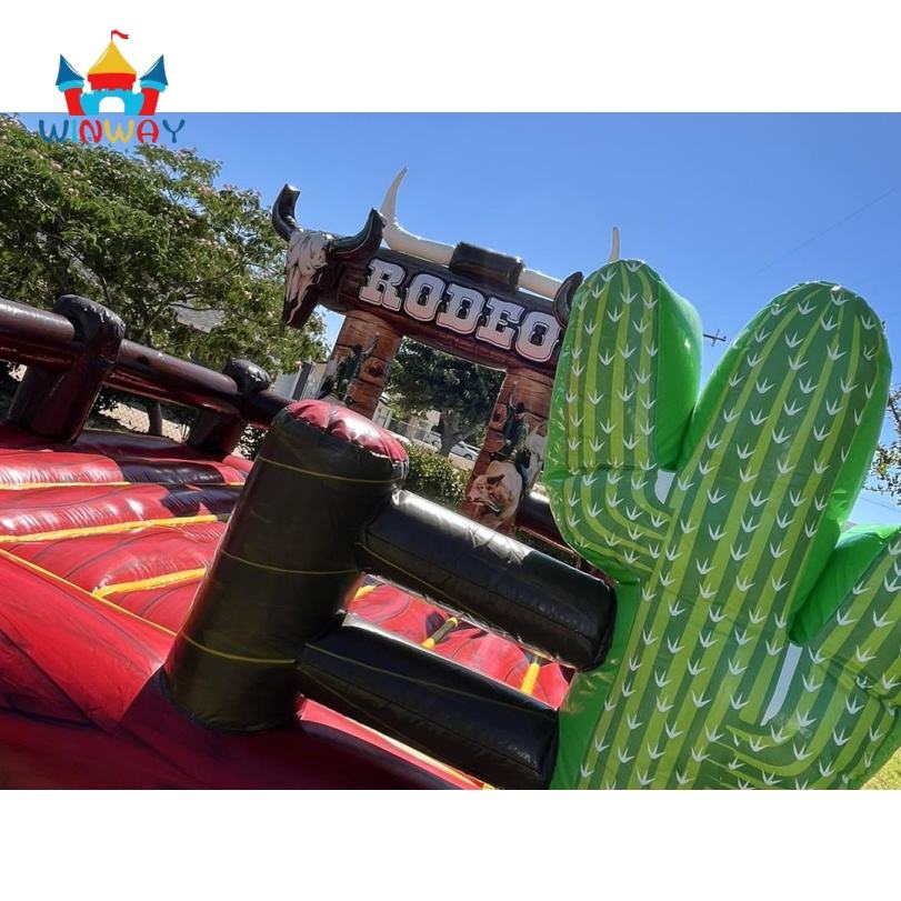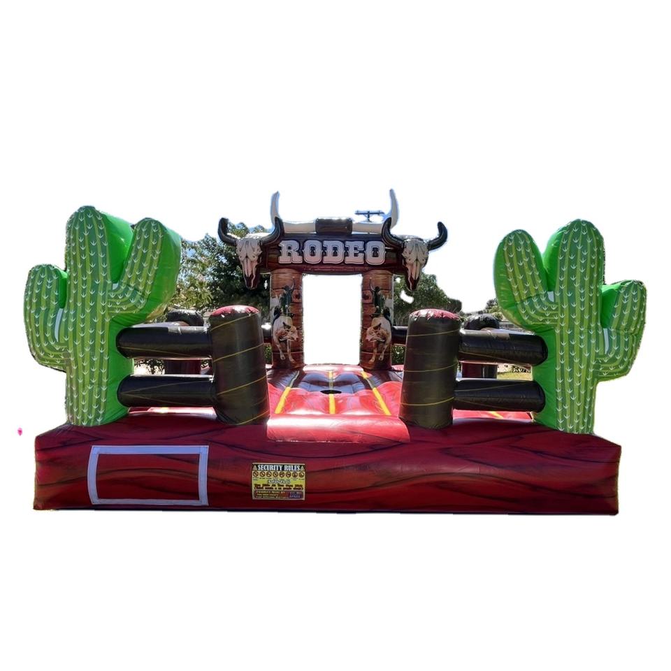 Riding Rodeo Cowgirl Cactus Château mécanique de saut de taureau avec crânes et bottes de cow-boy, PVC durable pour les fêtes d'enfants