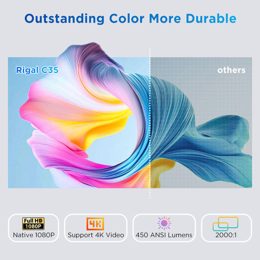 Projecteur intelligent Rigal C35 pour home cinéma 4K, projecteur LCD Android pour la vente en gros en Asie du Sud-Est