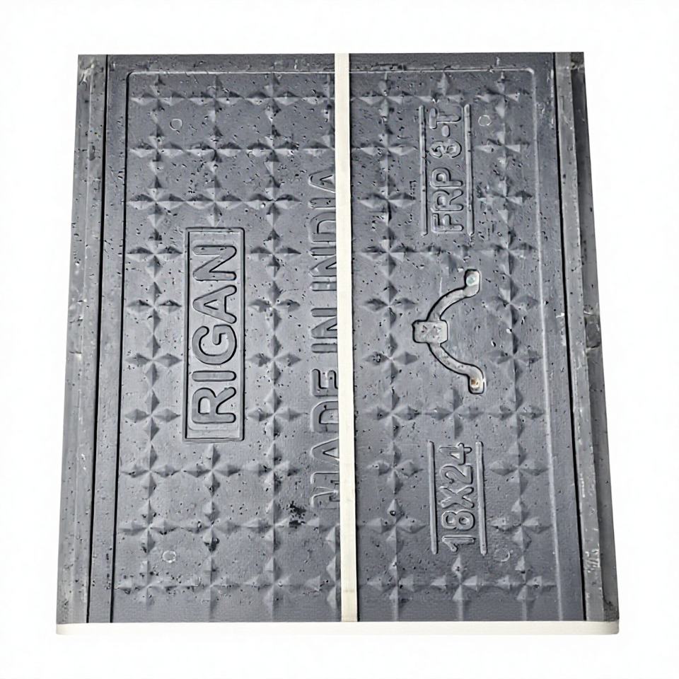 Couvercle de manhole carré en composite FRP de couleur gris Rigan 12x12 avec mécanisme de verrouillage antivol, écologique, anticorrosion, imperméable