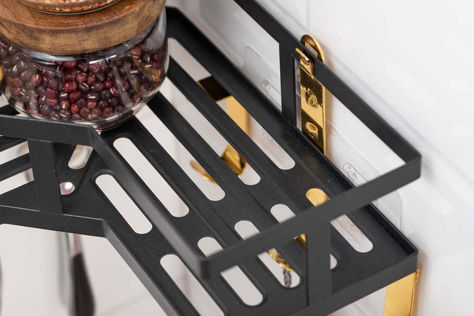 Étagère de rangement d'angle de cuisine en métal en forme de triangle, panier mural avec crochets adhésifs pour cuisine moderne de luxe et salle de bain
