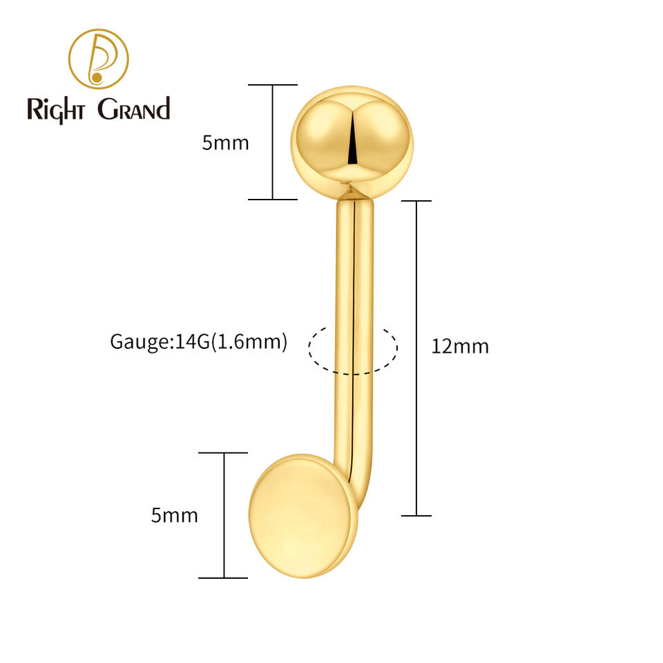 Piercing de la tête de cou verticale en titane ASTM F136 rond, 14G, filetage interne, barre en J, piercing Christina, bijoux pour le corps