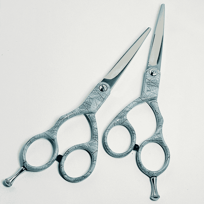 Ciseaux à cheveux professionnels en acier inoxydable à motif de feuille pour droitiers