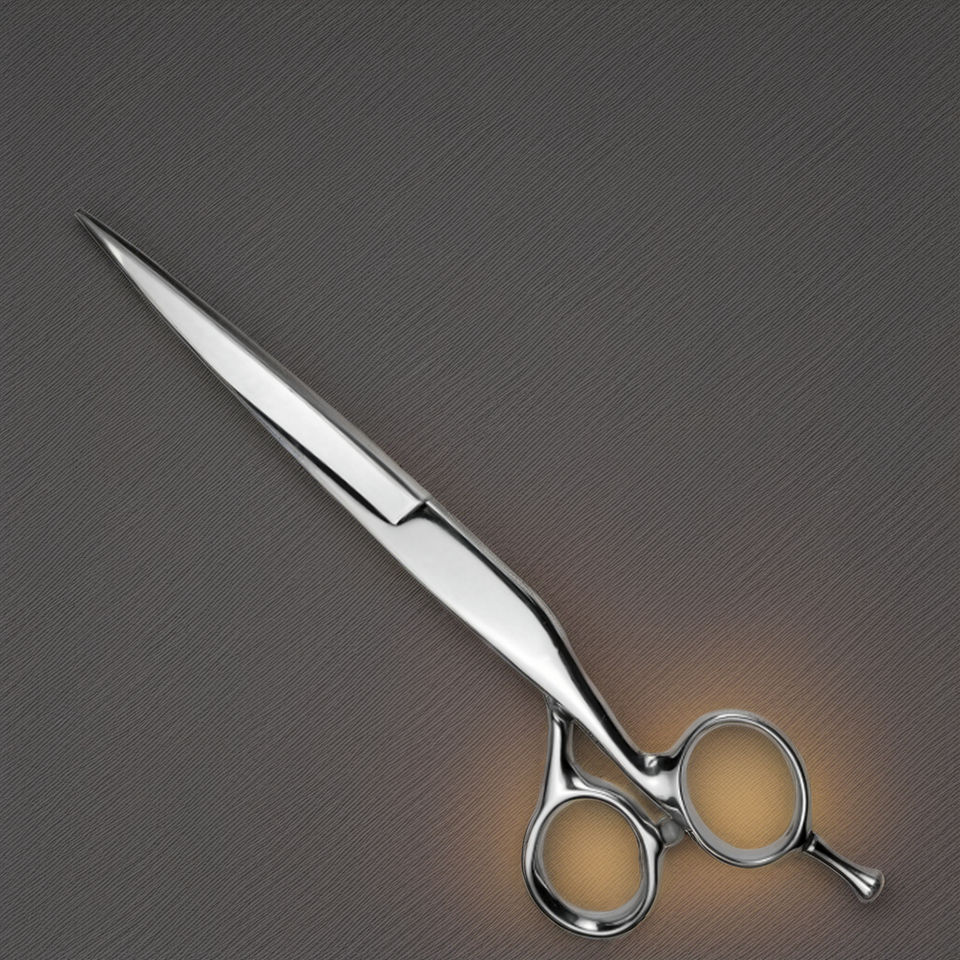 Ciseaux de coiffure non pliables pour droitiers avec lame courbée en acier inoxydable japonais et pointe acérée, manche en acier inoxydable