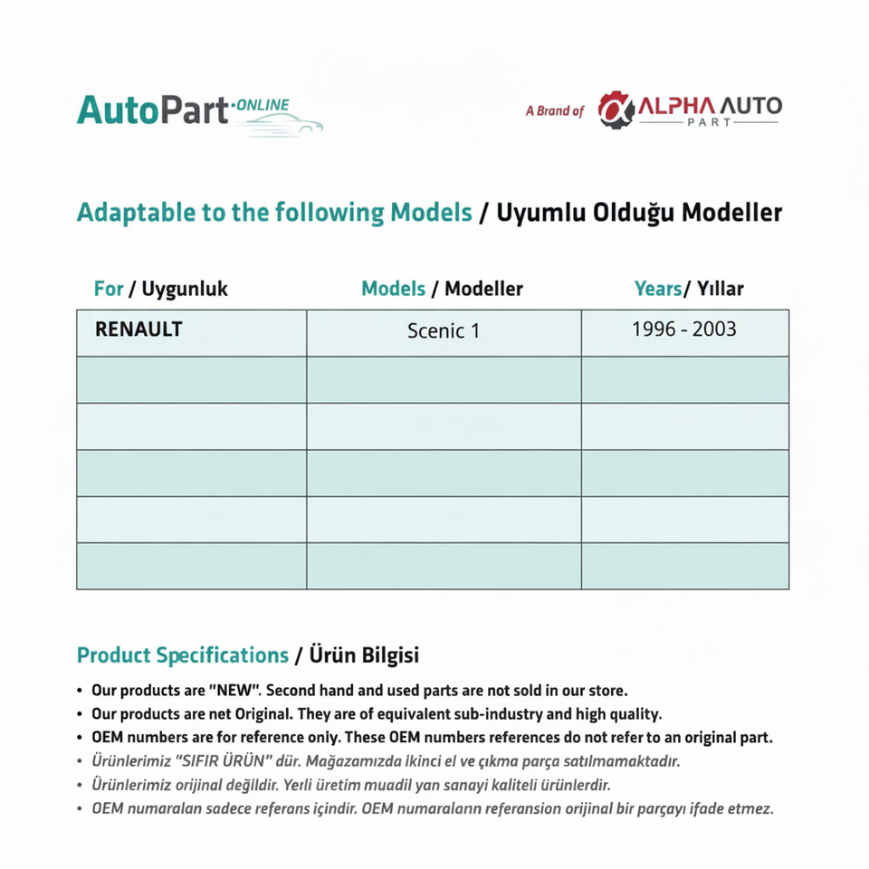 Kit de réparation de vitre droite pour Renault Scenic 1