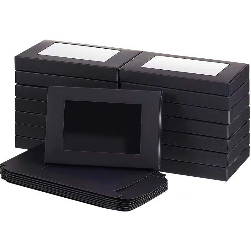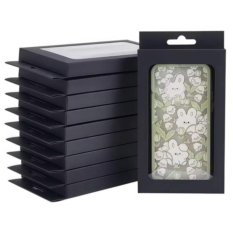 Boîte de téléphone magnétique rigide avec fenêtre en PVC, carton noir, intérieur en aluminium, logo personnalisé accepté