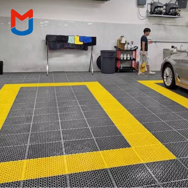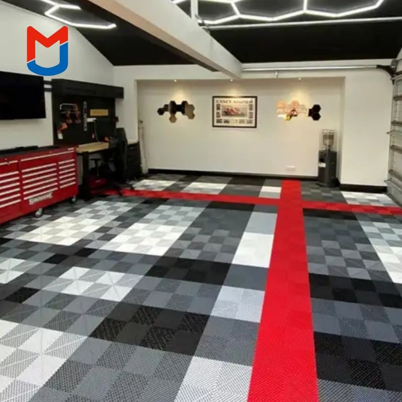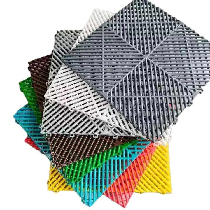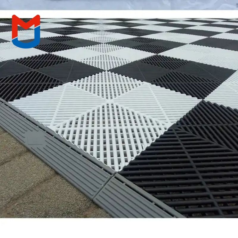 Carreaux de sol de garage en plastique PP à emboîtement coloré modulaire rigide Plancher de garage pour atelier de vente de détail de voiture